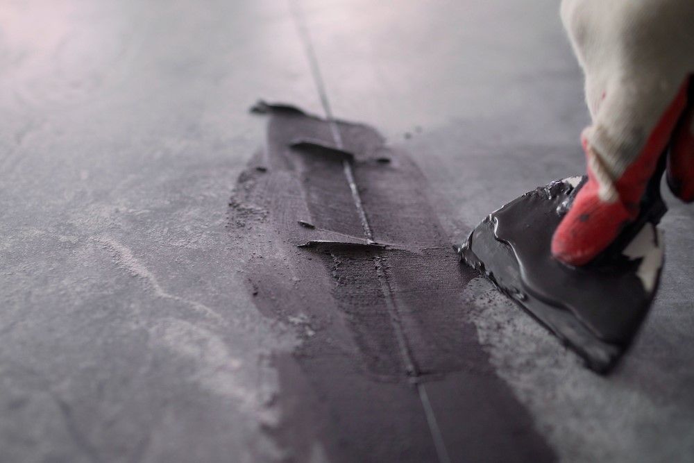 Con ayuda de una llana dentada forma estrías en la capa de cola, dándole un buen grosor.